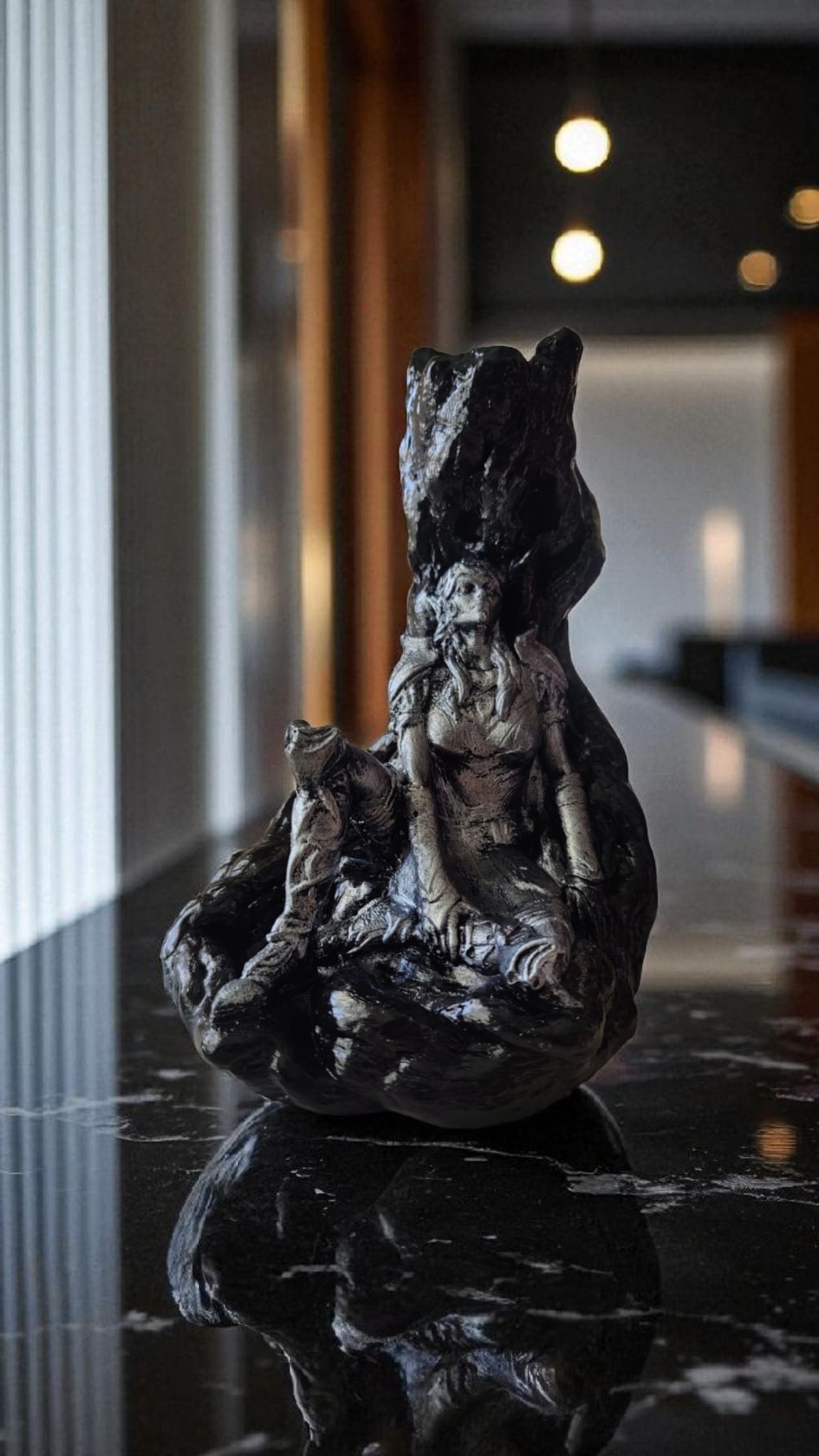 Kadim zamanların koruyucu ruhlarından ilham alan Kadim Muhafız, yalnızca bir tütsülük değil; ritüel, denge ve gücü temsil eden etkileyici bir dekor objesidir. Kayalık formun içinde oturan savaşçı figürü, mekâna sessiz ama güçlü bir varlık hissi kazandırır.